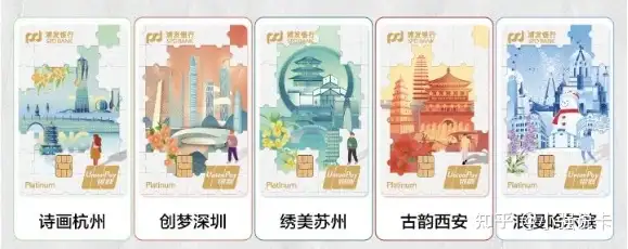 2024年3月14日浦发银行推出City Walk主题卡全新五大城市卡面,分别是诗画杭州,创梦深圳,绣美苏州,古韵西安,浪漫哈尔滨,卡面如下: